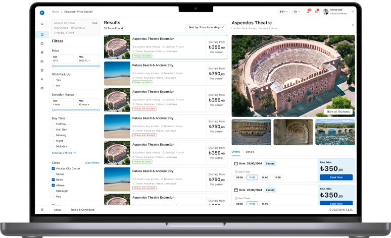 • Excursion App: Enables hotel guides to sell excursions directly to in-house guests.
